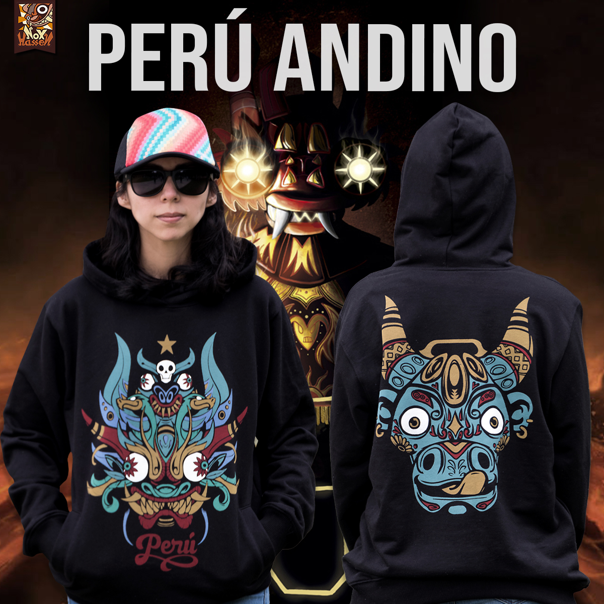 La Danza de la Diablada y el Torito de Pucara son alguno de símbolos que representan al Perú Andino, este polo o sudadera es una representación de los andes.